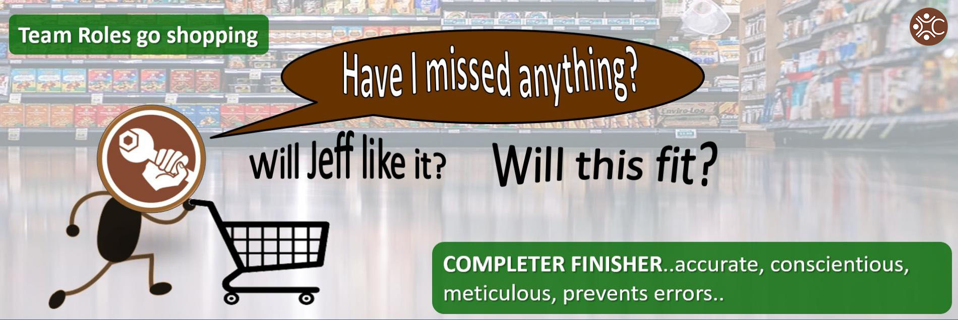 To the Completer Finisher shopper, anything they do, must be done perfectly well. They are not at ease starting something that they know will turn out being half done.